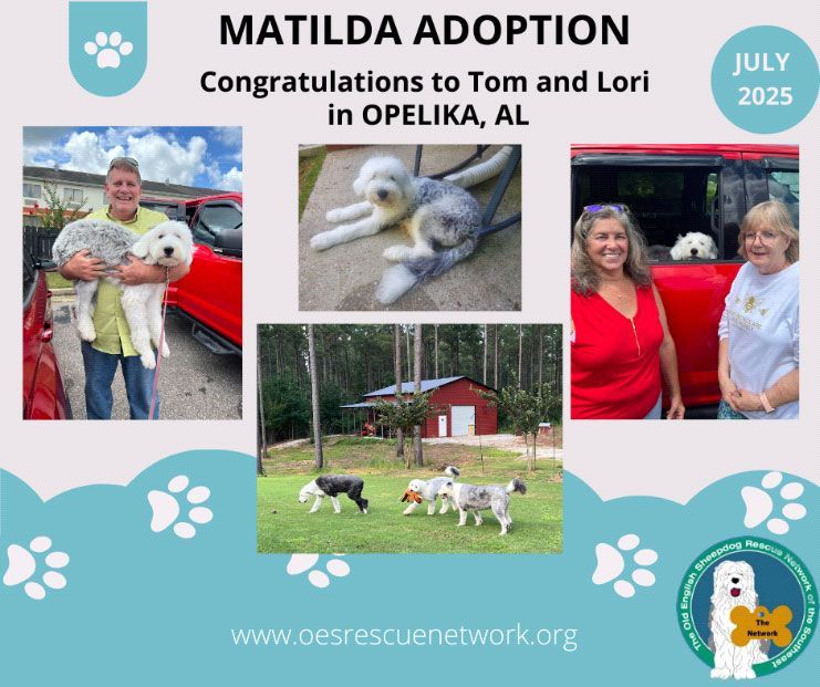 Our rescue had been working with an owner trying to give up his dog and then suddenly, he went silent. We had a lot of info on the dog, but no medical paperwork. One day we got a call from a lady driving by Target who saw a dog being given away from a truck. She contacted us and we realized it was the same dog we had been working on. We had already had a foster home lined up for her, so this lady helped immediately get her to a vet so we could get her shots done. Then she met up with Tom and Lori from Opelika. They had had three dogs and now were down to two so gladly welcomed the young energy of this 1-year-old dog into their home to keep up with the last dog they got from us a few years ago. Matilda was adopted, after a local spay was completed.